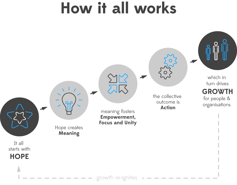 Hope creates meaning. People who have meaning are engaged. Engaged people take action – in their lives and in their work.